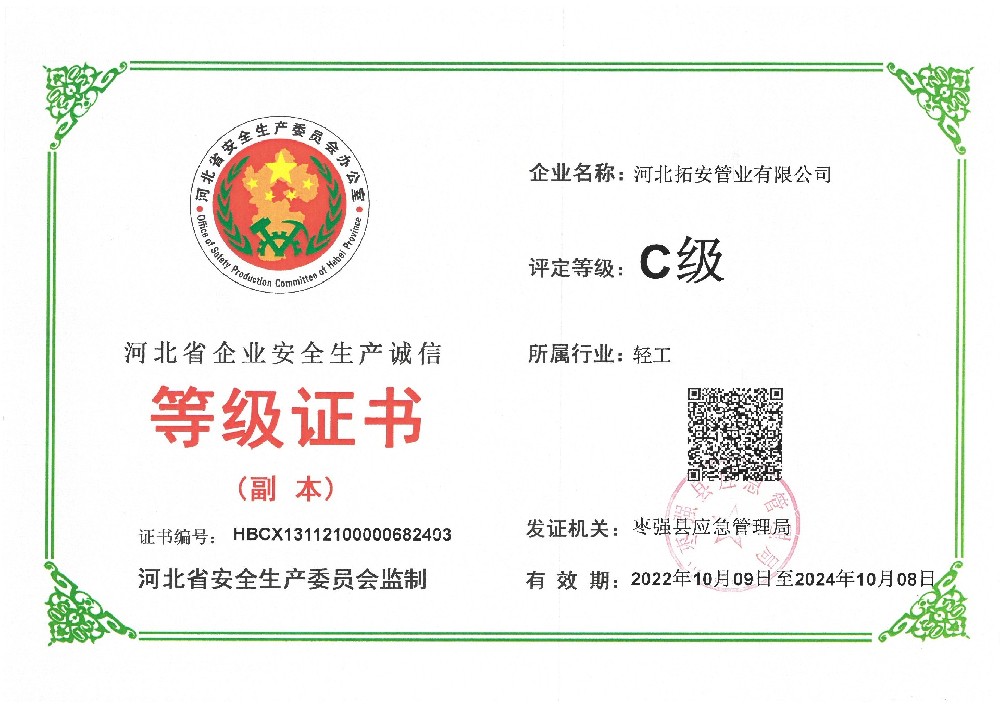 河北省企業(yè)安全生產(chǎn)誠(chéng)信證書